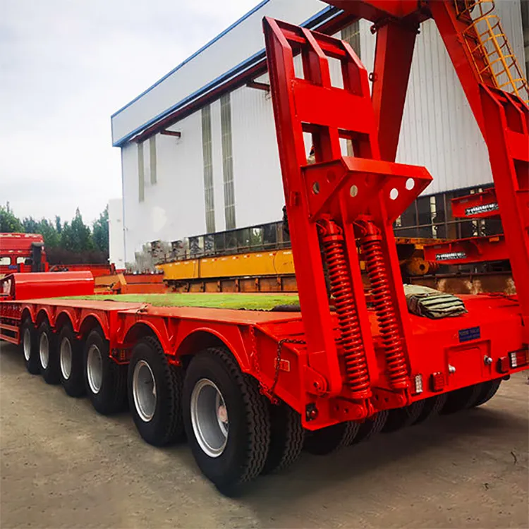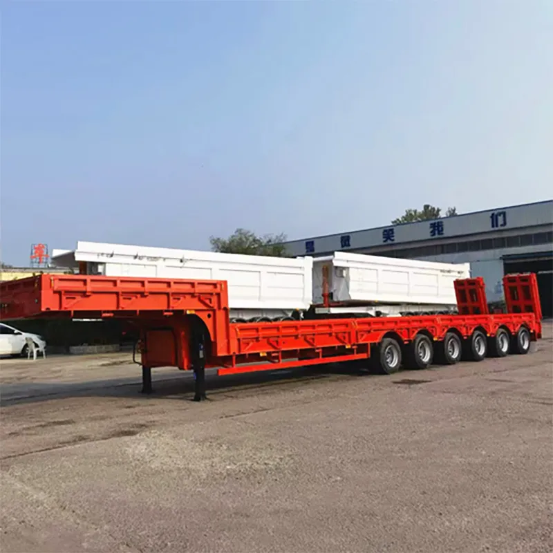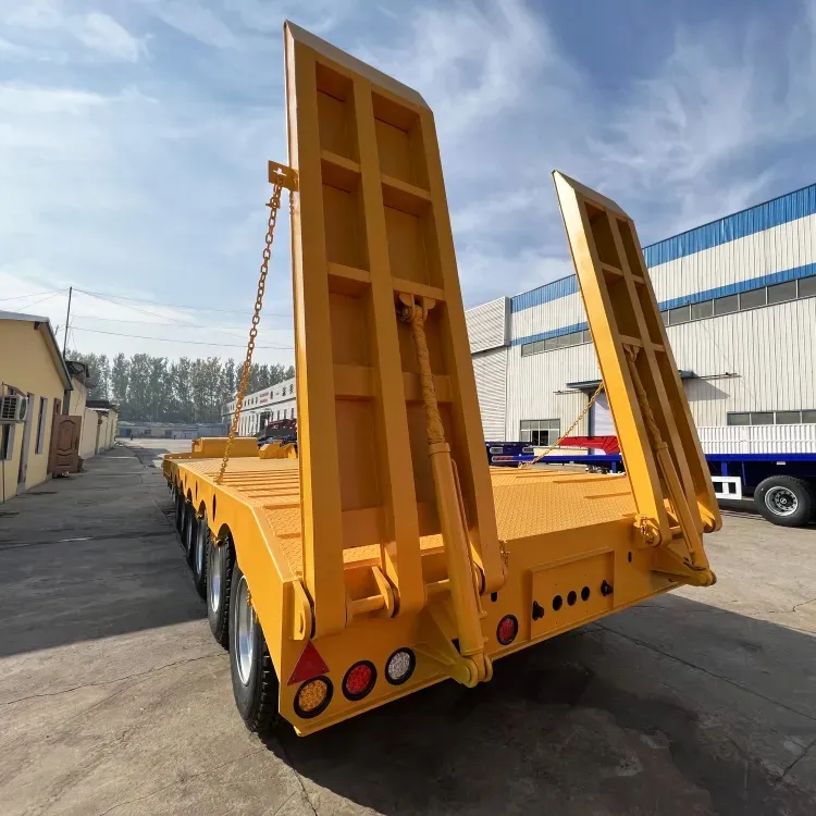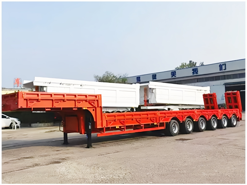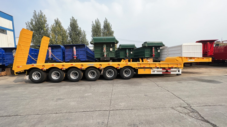 1.low plate semi trailers have flat, concave beam,and exposed tire structures, with a stepped frame and I-shaped longitudinal beam section, which have the characteristics of high stiffness and strength.