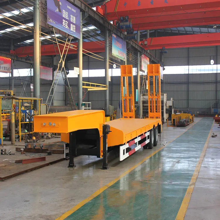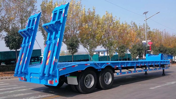 1.low plate semi trailers have flat, concave beam, and exposed tire structures, with a stepped frame and I-shaped longitudinal beam section, which have the characteristics of high stiffness and strength.