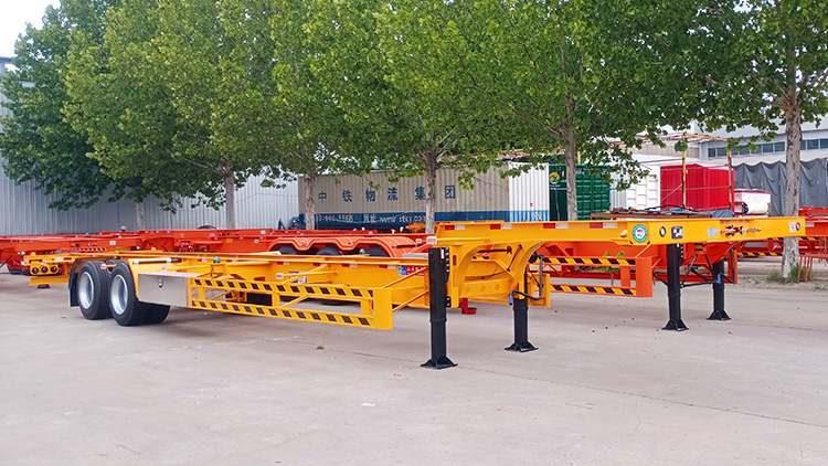 The skeleton container transport vehicle is a type of container transport semi-trailer frame. The skeleton frame consists of longitudinal beams, cross beams and front and rear ends.