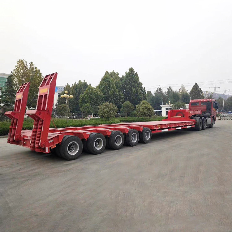 Low-bed semi-trailers are usually used to transport heavy-duty vehicles (such as tractors, buses, special vehicles, etc.), rail vehicles, mining machinery, forestry machinery, construction machinery (such as excavators, bulldozers, loaders, pavers, cranes, etc.) ) and other heavy-duty goods, the lower the center of gravity, the better the stability and safety, and the stronger the ability to transport over-height goods and pass overhead obstacles.